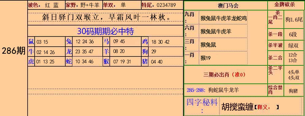 第286期绝杀半波【绿单】开?00准 |